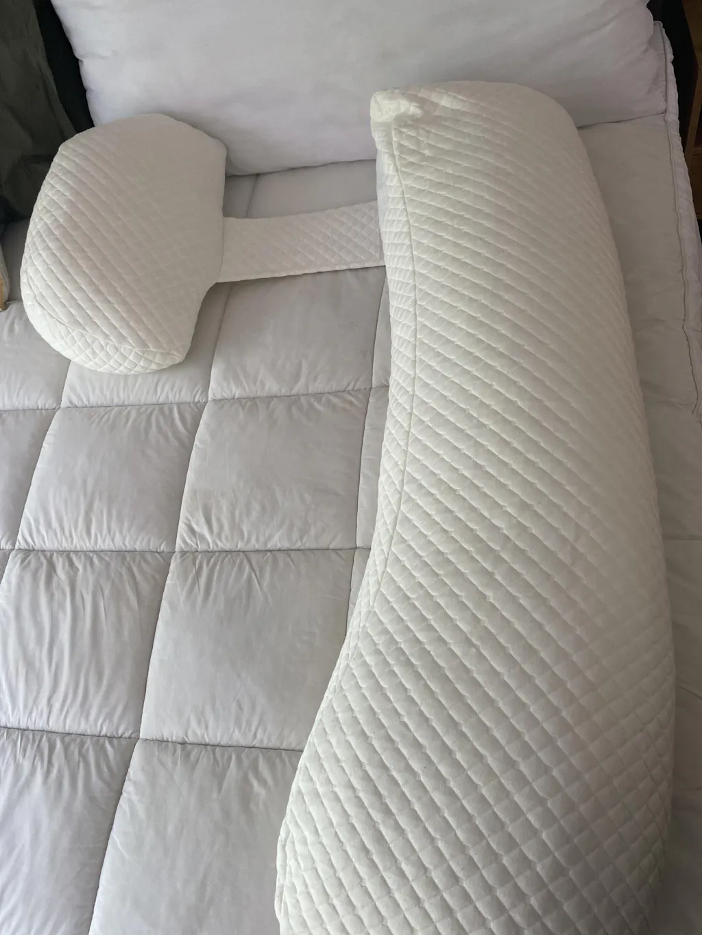 The best pregnancy pillow you could buy! Feels like a hug around your growing belly ever night. Didn’t have any back or hip pain since I got it. ❤️❤️❤️❤️ 100% recommended