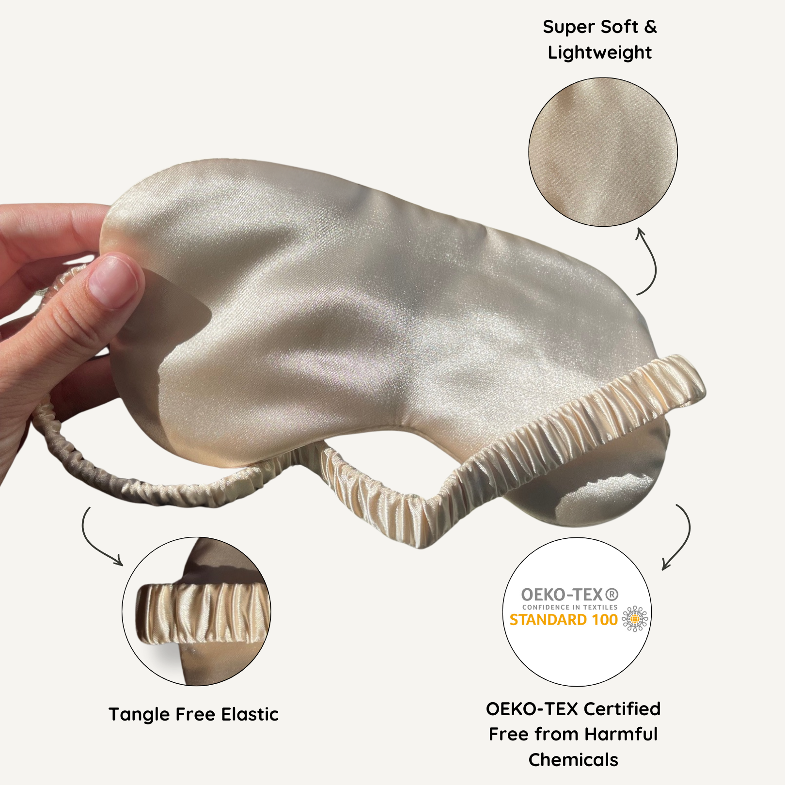 Crafted from smooth, lightweight polyester satin, the eye mask feels silky-soft against your skin while remaining breathable and gentle for everyday wear.